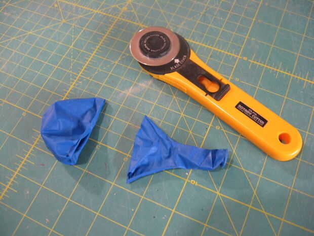 Corta el globo por la mitad, como en la foto. Puede usar las tijeras, por supuesto, utilicé a mi cortador rotatorio porque es práctico y rápido.