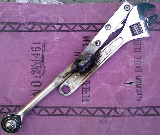 Luego que soldar la llave de la llave. Sujeta las dos herramientas juntas para que las cabezas de la llave y la llave se alinean en el mismo plano.