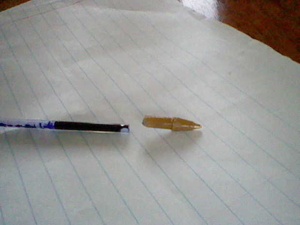 Paso 3: Tire desordenado. Saque la punta de la pluma. Tirar el tubo de tinta de la punta. Usted puede usar tinta aunque la pluma se quedó sin tinta. Tome alcohol para fricciones y derramar algunas dentro de la punta del lápiz. Si no las agujas de coser será manchadas.