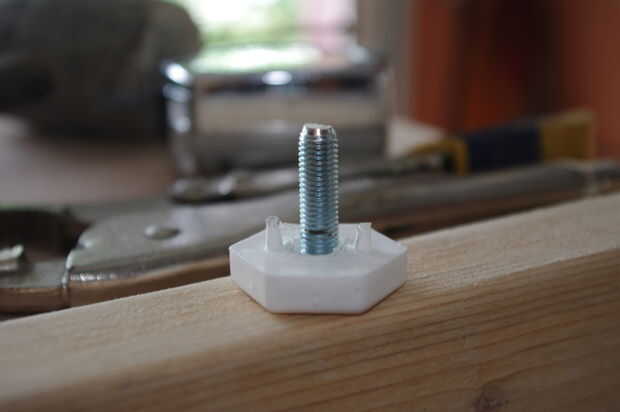 2: refrigerador reutilizados cojines del pie fueron puestos en los postes de madera. Mi SIL fue referido sobre marcar la clase baja por lo que aunque estos pie almohadillas levantaría el atril del suelo.