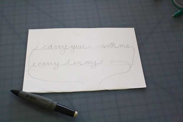 Lo primero que usted querrá hacer es elegir un poema corto o frase, idealmente una que fácilmente puede ser modificado cambiando algunas palabras. Elegí e.e. cummings' "llevo tu corazón conmigo, lo llevo en mi corazón," porque deja un montón de opciones.