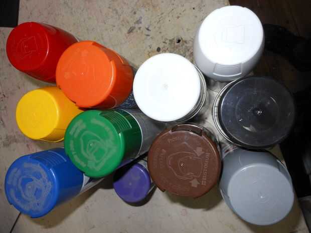 Haz tantos colores de pintura en aerosol como usted se siente como usted necesita. Empecé con colores primarios, colores secundarios, blanco, negro, gris y marrón. Finalmente he añadido algunos pasteles así. Usted también querrá un bote de imprimación, la primera tanda que hice tenía la pintura formando escamas. La cartilla asegurará de su bono de colores correctamente a los imanes.