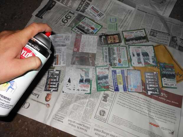 Rocíe una capa, deja secar y luego rociar sobre los colores! Em deje secar completamente antes de pasar al siguiente paso.