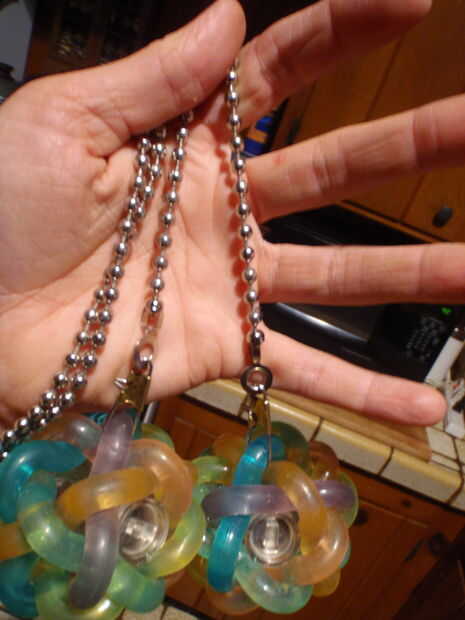 * Nota: prefiero la oscilación de la cadena de bola-estilo. Sin embargo, la gente amable de renegado malabares fuertemente precaución contra el uso con el fuego, ya que los enlaces no son tan fuertes como la cadena regular que se muestra aquí, se corre el riesgo de un enlace eventualmente romper y el cubo flaming golpear a alguien en la cara. Ujo. Ha sido debidamente advertido.