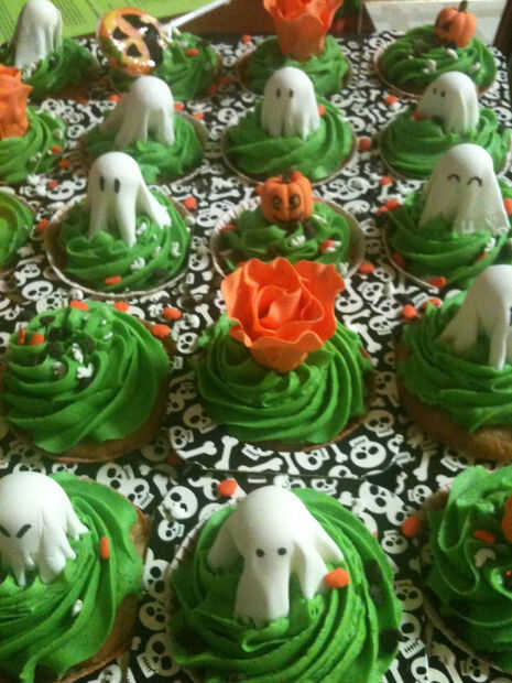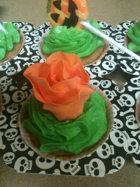 Estos cupcakes son increibles, y una de las más húmedas las tortas me han hecho nunca. La cerveza, frescas manzanas ralladas junto con la canela y glaseado de sirope de arce sólo degustar como caída y hacerlo Halloweeny decidí hacerlo todo brillante veneno verde.