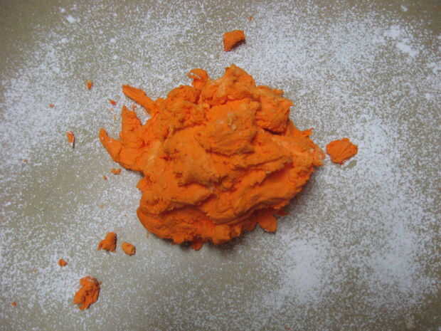 - Amasar la pasta agregando azúcar en polvo para formar una masa blanda pero no pegajosa