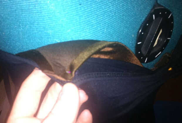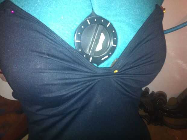 Pegar un pin en el interior del sujetador que conecta la parte superior de la camisa con el sujetador.