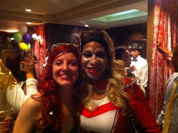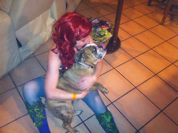 Ordenar una peluca roja sobre Amazon o Ebay-yo tengo la mía para cerca de $9 en él era perfecto para una vez que utilice. Elegí a un ondulado marrón rojo. Pega algunas hojas espalda con espalda, luego pegados en la peluca.