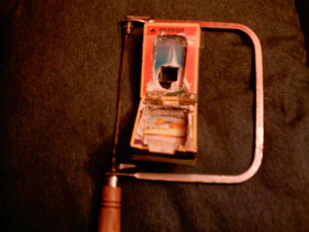 Luego tomar una sierras (prácticamente cualquier que usted puede conseguir en el agujero y corta las esquinas). Corte su forma.