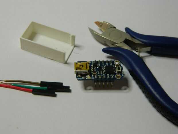La baratija se alimenta del USB así tenlo en cuenta para hacer el conector USB de la baratija lugar de acceso fácil. También si usted necesita programar el Abalorio más adelante es más fácil de esta manera. Al cargar un nuevo código a baratija, simplemente comience el código de carga en la derecha 10 segundos después de desplumar el cable USB a la PC.
