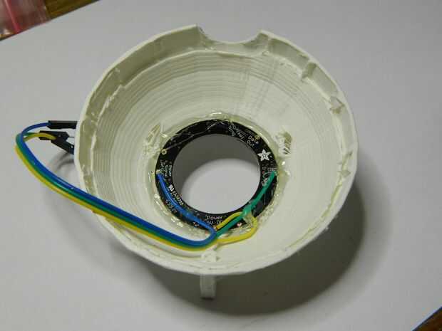 Soldadura de los cables el anillo de NeoPixlel si no hubiera hecho ya.