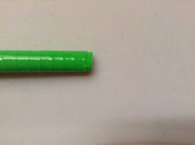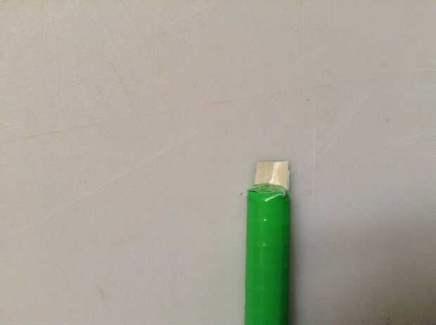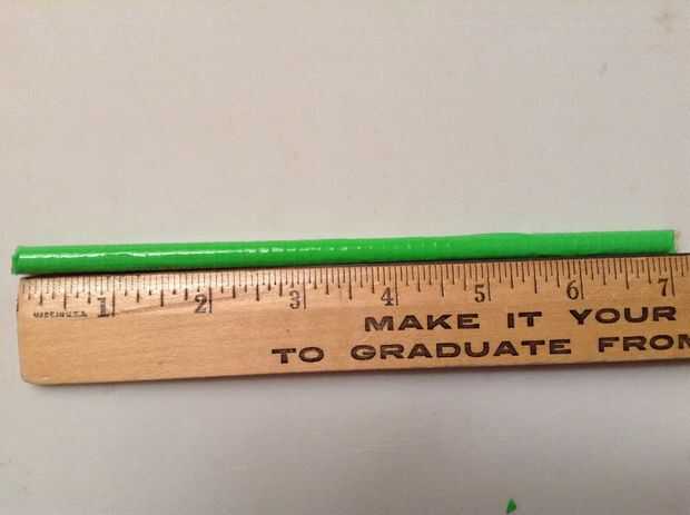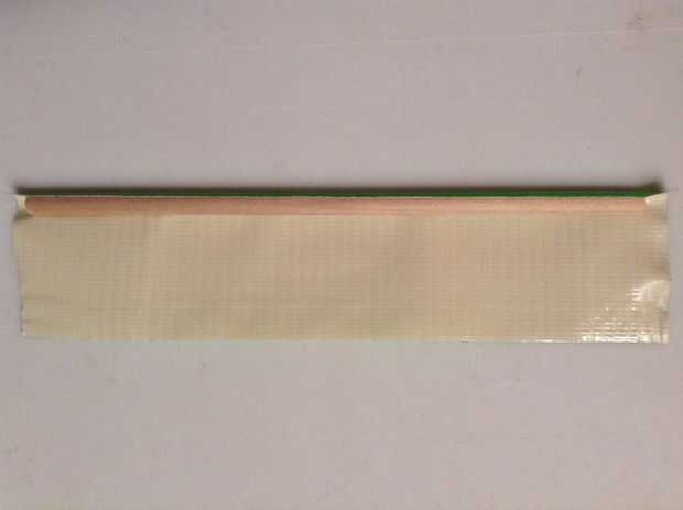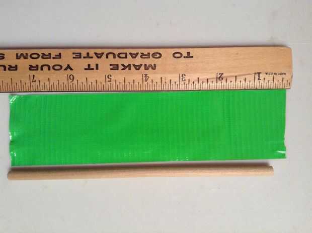 Esta es una parte más simple de la rosa. Tomé un taco de 1/8 de pulgada de diámetro y cortar hasta aproximadamente siete pulgadas. También se puede utilizar un lápiz si quieres. Lo bueno de la espiga de 1/8 de pulgada es puede afilar en sacapuntas y pegarlo en un jardín si querías. Tomó un trozo de cinta verde y corte en un poco más que la longitud del tallo. Creo que la longitud de la cinta americana verde era siete y media pulgadas de largo. El siguiente paso es envolver la cinta alrededor de la espiga. En los extremos es cierto exceso. Puede cortar los extremos y poner un trozo de cinta adhesiva sobre ellos, o cómo me gusta hacerlo, es cortar verticalmente los extremos y doblar hacia adentro lo. Si utiliza un lápiz, tienen la cinta parada al final del amarillo por lo que se expone la punta. Luego cortar y plegar el lado del borrador. Lo mismo pasa con si usted utiliza una pluma. Se trata de cómo se hace la madre.