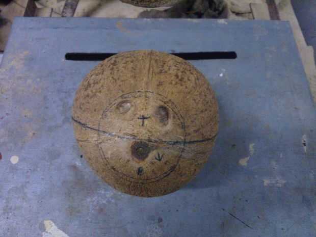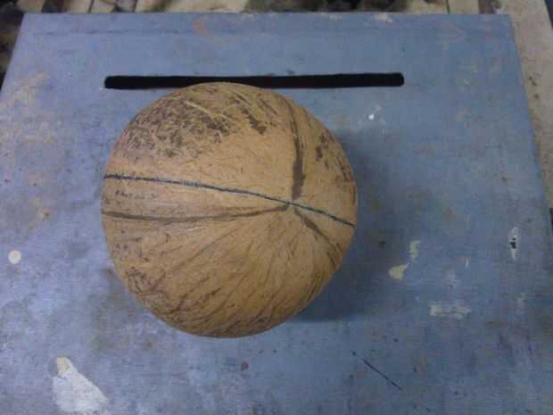 Nota: trate de seguir las líneas naturales de la superficie del coco para conseguir un aspecto simétrico agradable final.