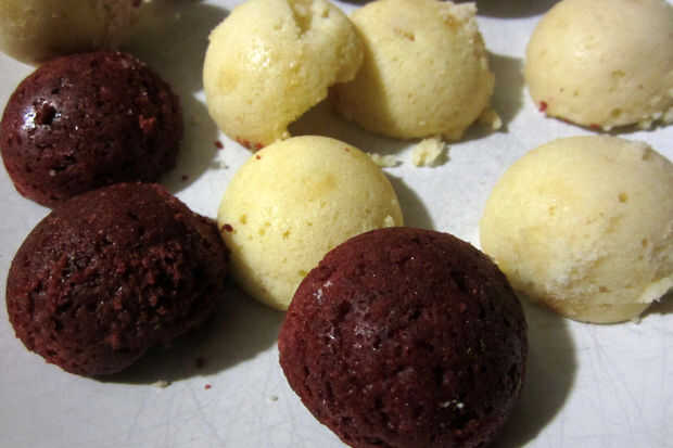 No se puede usar mezcla de torta para esto. Creo que mezcla de la torta es una gran manera de personas fiables, infalible tortas liviana y esponjosas, pero son simplemente demasiado liviana y esponjosa para esto. Las tortas son pequeñas y haz manejadas bastante durante este proceso, y mezclas de pastel solo se desmoronan. Me hice este error: me decidí a probar una marca nueva de mezcla de torta para mi terciopelo rojo. La primera tanda cayó en pedazos cuando trató de sacarlos de los moldes. El segundo lote sobrevivió con cantidades ridículas de engrasar el molde, pero eran muy muy difícil de trabajar con al cubrir con fondant. Si usted quiere ahorrarse un montón de problemas, se moleste usarlo.