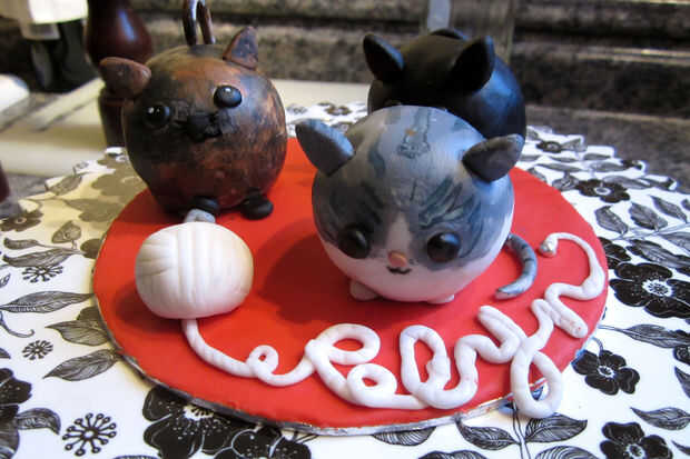 Este método de llenado y que es muy versátil y se pueden decorar las tortitas en un montón de maneras--por ejemplo, los tres gatitos en la última foto. Te recomiendo hacer un montón y luego volviendo loco con decoración de experimentos. Yay, pastel-ciencia!