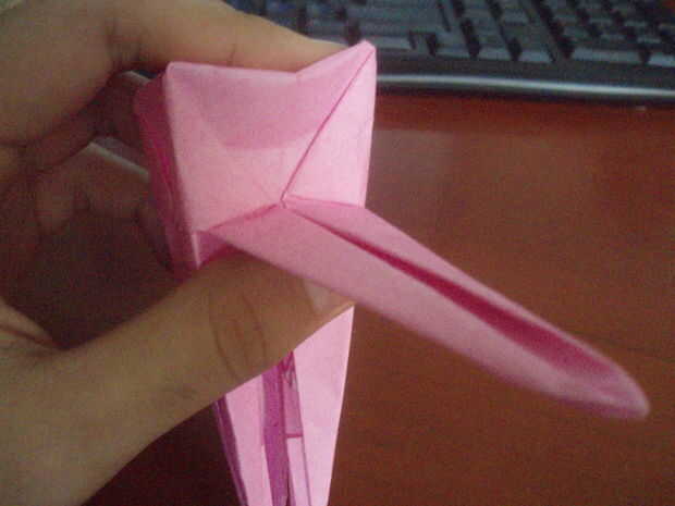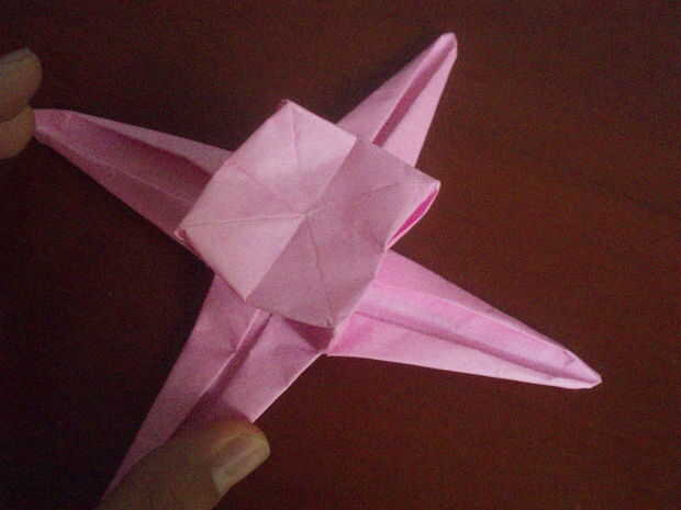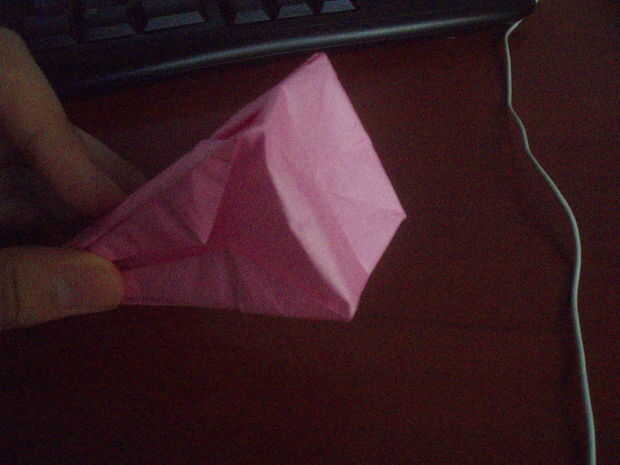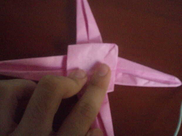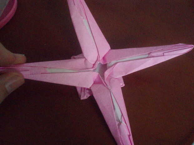 Esto es lo difícil. Atentamente mis instrucciones. Tire lentamente de las 4 esquinas. En que la parte superior del modelo se está plana. Presione lentamente mientras se mantiene tirando de él. Hasta en la forma de un cuadrado (ver la imagen). Doblar los cuatro lados. Así que usted puede hacer reposar sobre la mesa. Ahora esta es la parte áspera: Presione el cuadrado hacia abajo hasta que quede plano. No te preocupes la parte posterior de la misma. Simplemente presione hacia abajo.