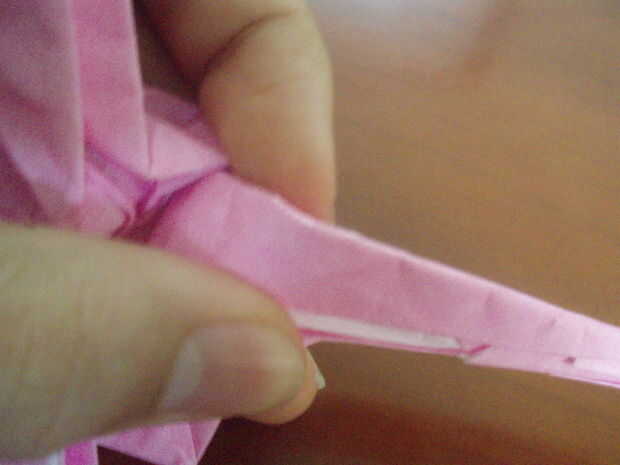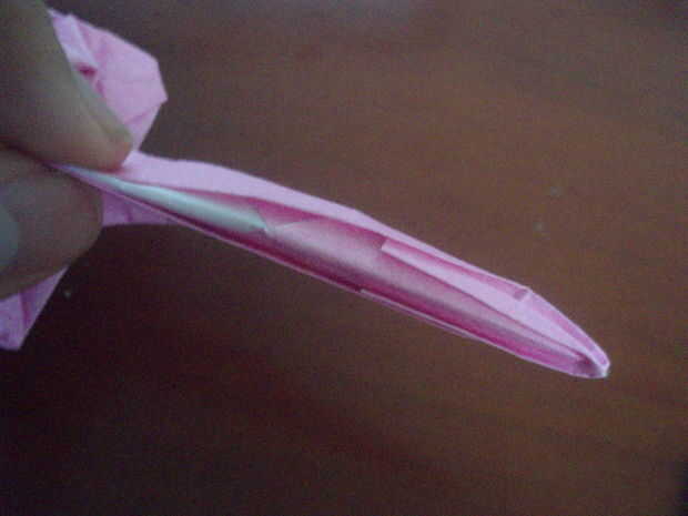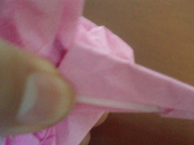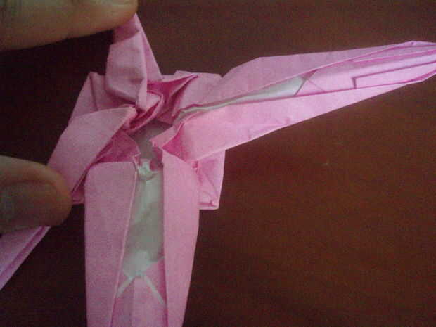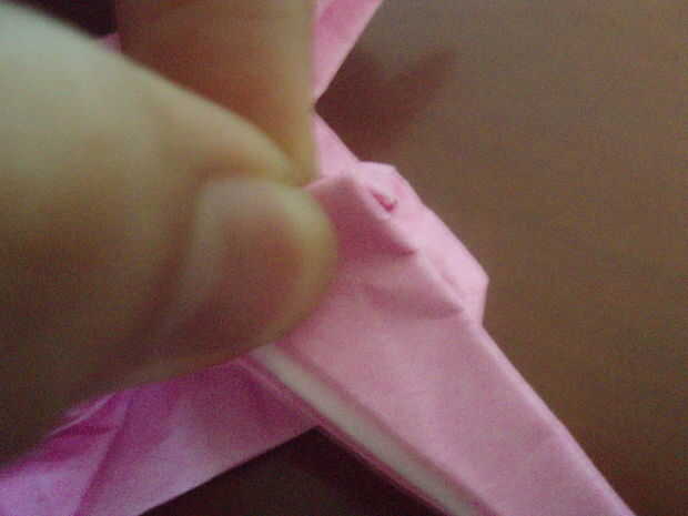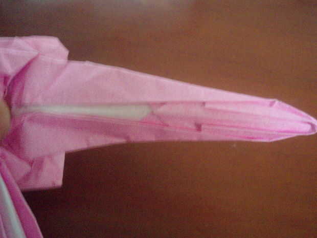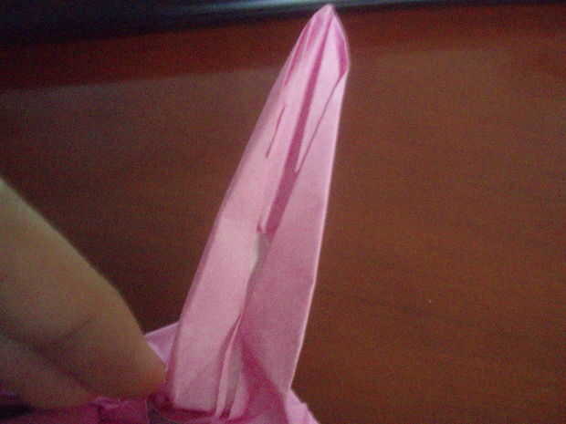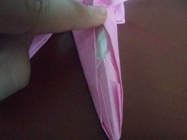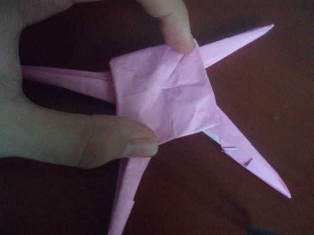 When you see the back of your model it's like a compass right? Así que voy a utilizar la palabra norte, este, oeste, sur. ¿Que va a hacer las cosas bien más fácil? Así que empecemos! Primero tomar el lado del norte. Dóblalo a la mitad, luego doblar a la izquierda, esto se denomina pliegue oreja de conejo. Luego tomar el lado este. Dóblalo por la mitad. Oreja de conejo no es necesario doblarlo. Ahora tome el lado oeste, oreja de conejo doblar a la derecha. Por último, tome el lado sur y conejo oreja doblar a la derecha. Crimp-doblar todos los lados (ver foto).