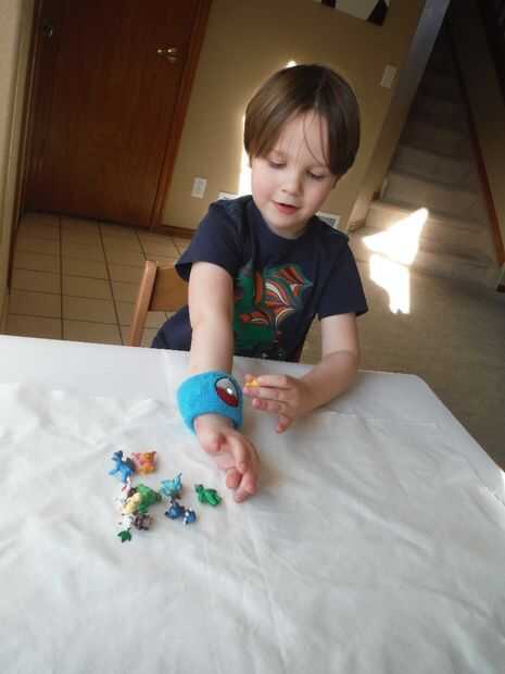 Quise rendir homenaje al Pokemon GO project y había creado mi propio Pokemon detección de pulsera que se enciende y vibra cuando un juguete Pokemon es junto a la muñeca del usuario. Se hace de viejo cotillón que mis hijas recibieron en una fiesta de cumpleaños hace tres años. Me las arreglé para confiscar una de sus pulseras y un puñado de los pequeños juguetes de plástico y los de ardilla lejos para un proyecto de día de lluvia. No sé qué proyecto que iba a utilizarlos para en el momento, pero cuando me topé con el alijo, el pasado fin de semana, yo sabía que tenía justo lo que quería tratar con él: circuitos sewable!