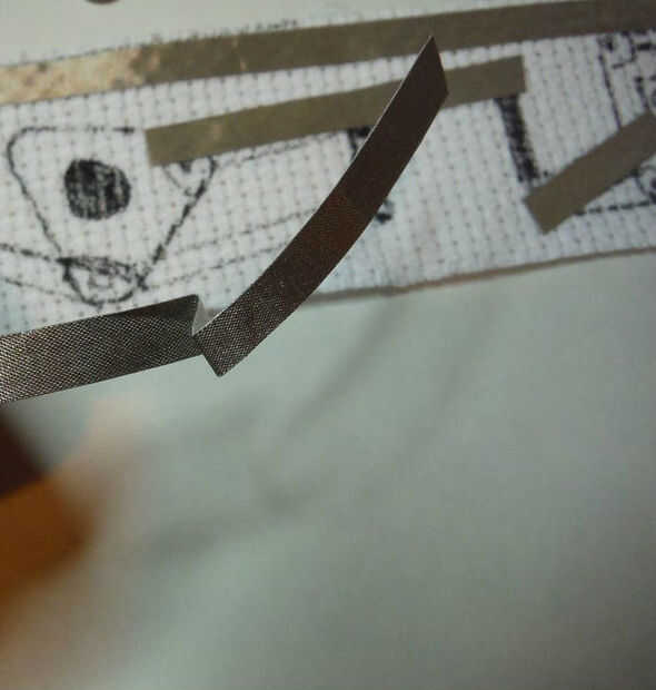 Después de mi bosquejo, coloqué la cinta conductora en la tela de desecho, doble control en el camino con los componentes para ver si el espacio estaba siendo correcto. Donde la cinta conductora tuvo un ligero ángulo a su paso, asegúrese de cortar la cinta para hacer el ángulo. Tendrás que plegar la cinta en sí mismo para mantener la ruta una sola pieza y continua. El lado adhesivo de la cinta de no conducir la electricidad y por lo tanto se tendría un circuito quebrado si cortarlo en dos trozos y los puso uno encima del otro en un ángulo.