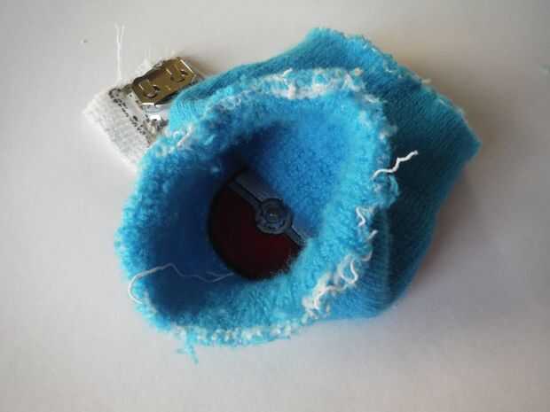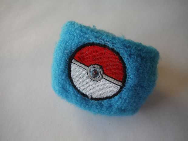 Para pegar el circuito de tela dentro de la pulsera, la pulsera debe cortarse alrededor del interior perímetro abierto y vuelta adentro hacia fuera, así que la parte posterior de la pokeball parche ahora está hacia fuera. El centro del parche pokeball también debe cortarse lo suficientemente abiertos como para caber el LED a través de.