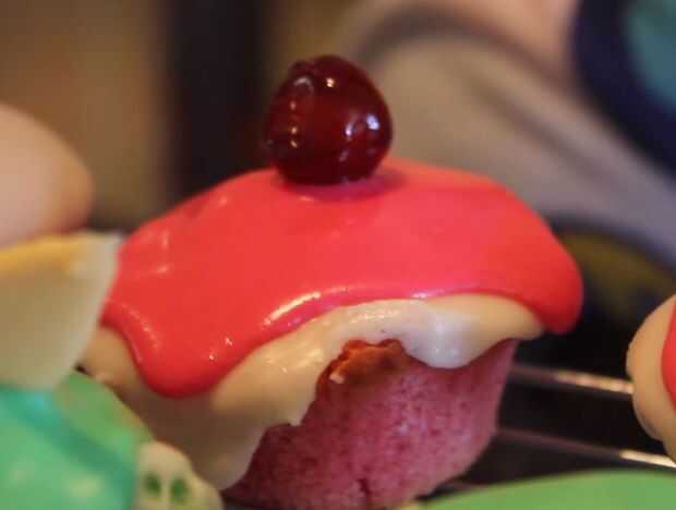 -Rosa: Ha la base del glaseado blanco, estrella hilo glaseado de crema de mantequilla rosa y un glacé cereza