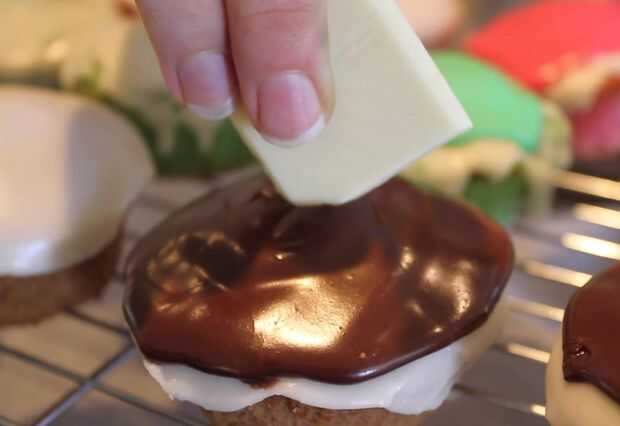 -Marrón: tiene la base del glaseado blanco, betún marrón y un bloque blanco de chocolate Lindt