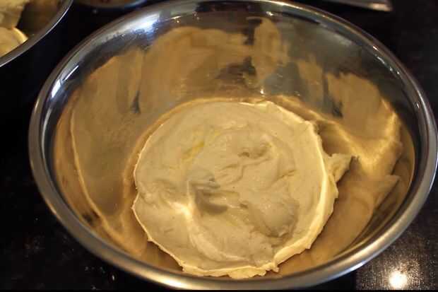 Luego separar la crema de mantequilla en 3 diferentes tazones.