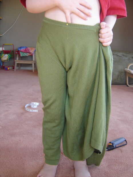 Del cuello de la chompa, que tu hijo meter su pata en una manga y la otra pierna en el cuerpo de la chompa. Si la axila cumple la entrepierna y la longitud y el ajuste de las polainas son buenas, eres oro! Si no, no te preocupes, Plan B se describe en el paso 6.