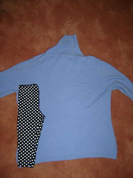 En primer lugar, si el manguito es demasiado pequeño, Resígnate a hacer capris o incluso cortos--no tendrás suficiente tela para trabajar con en el cuerpo de la chompa. Si el manguito es demasiado largo, tiene un par de opciones. Nuestro objetivo es minimizar el número de costuras que tienes que coser. En primer lugar, haz un par de leggings o pantalones ligeros (o medias de peso pesado, supongo) que actualmente forma su hijo. Doblar por la mitad longitudinalmente, por lo que la pierna es completamente extendida. Coloque el suéter que desea utilizar en una superficie plana y evaluar las siguientes posiciones. 1) Alinee el borde del tobillo de los pantalones con el brazalete de la manga. Si las mangas son amplias y agradables, es capaz de usar simplemente la costura de la entrepierna de los pantalones como guía de corte (Tómese por lo menos 1/4" subsidio de costura!) y le cortó los brazos a lo largo de la cinturilla de los pantalones. Esto no significa costuras extras para usted! 2) si las mangas no son lo suficientemente amplia como para la opción 1, alinee la banda de los pantalones con la pretina de la chompa y la costura exterior de la pierna de los pantalones con la costura lateral de la chompa. Utilice la forma de los pantalones de su guía de corte, recordando la costura y cortar la pierna y alrededor de la entrepierna a la cintura. Usted tendrá que coser la costura de la pierna interna de cada pata antes de paso del principio 7, pero esto es muy simple. Doblar la pierna por la mitad, emparejar derecho contra derecho y coser la costura de la pierna interior. Continuar luego con el instructivo en el paso 6. 3) si usted no puede conseguir suficiente longitud del cuerpo de la chompa, poner la pierna de los pantalones en la parte superior de la manga por la parte superior de la pierna es incluso con la axila de la chompa. Luego, a partir de la axila, cortar la entrepierna y la cintura forma del cuerpo y los hombros del suéter (recuerda un margen!). Luego recortar el sobrante por debajo de la banda de los pantalones. Para esta opción, usted necesitará terminar el borde inferior de cada pata después de completar los pantalones. Usted puede ya sea a su vez bajo el manguito de cada pata--muy similar a la fabricación de la carcasa para la cintura, o puede utilizar una puntada de zig-zag estrecho para crear un borde ondulado "lechuga" para un acabado ruffly.