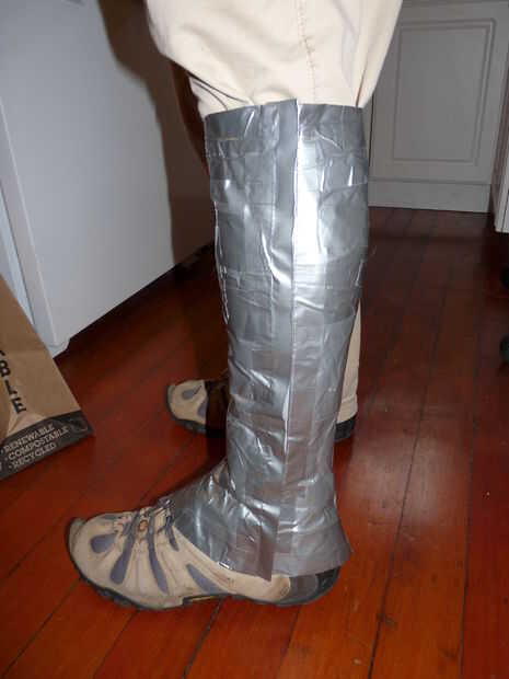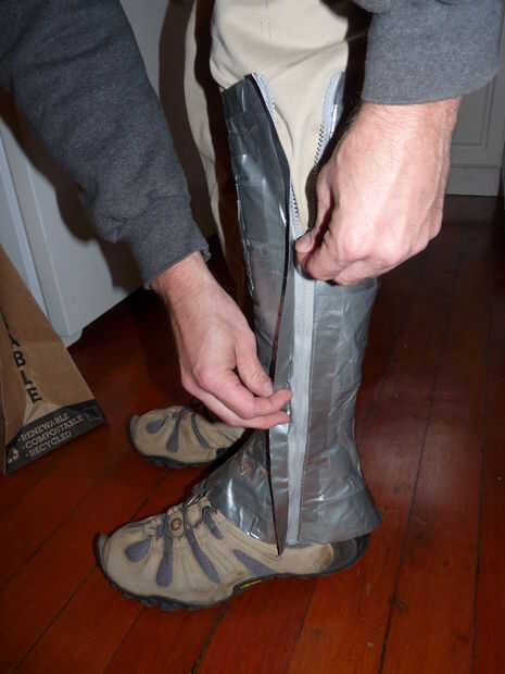 Ahora tienes un par de polainas de a prueba de viento, impermeable y resistente a la cola de zorra!  También ayuda a proteger los pantalones de hiedra en caminatas!