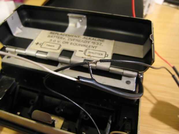 Los cables blancos son positivos y el negro son negativos. Cortar los conectores de los titulares y tira hacia atrás de los cables. Recuerde hacer el encogimiento del calor antes de que suelde los cables juntos! Soldar dos cables blancos de la cámara con el cable rojo en el portapilas. Soldar dos cables negros en la cámara con el cable negro en el titular. Deslice el encogimiento del calor en la soldadura conjunta y encogen con el calor del soldador.
