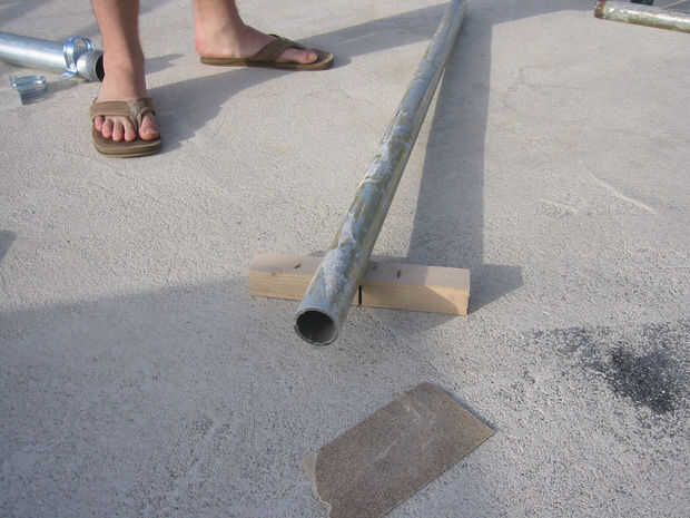 El poste de soporte es un poco más complicado. Ya que estos tubos con extremos roscados, como que no así que lo primero que hice fue cortar uno de los extremos.