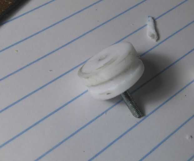 Utilicé un pedazo de tabla de cortar, pero podrían fundirse algunas jarras de leche, encontrar algunos desechos de plástico o comprar alguna barra de polietileno de alta densidad (a pesar de derrotaría el punto). También se utiliza un perno pequeño m3 (cualquier pequeño tornillo o perno debería funcionar)...