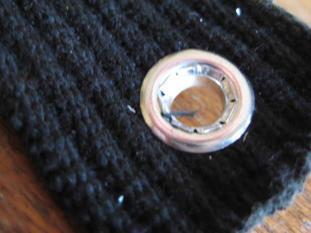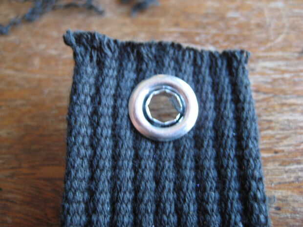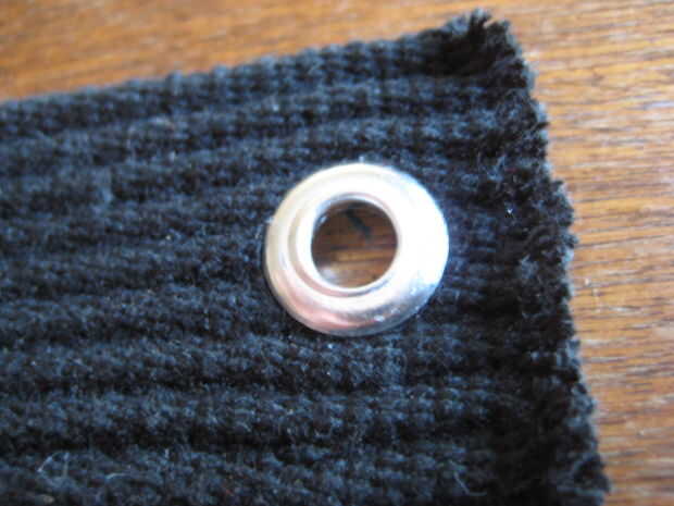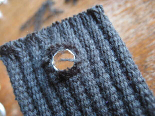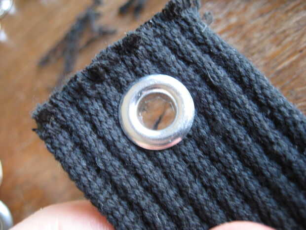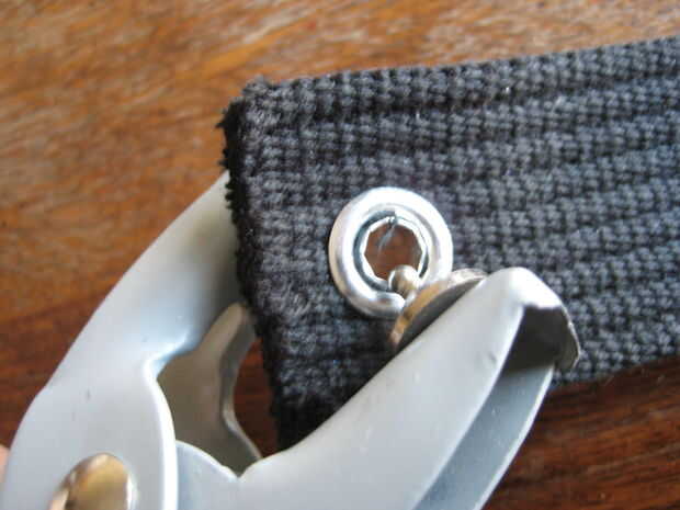 Una vez que han cortado los agujeros, inserte sus ojales y sujete con las pinzas de ojal.
