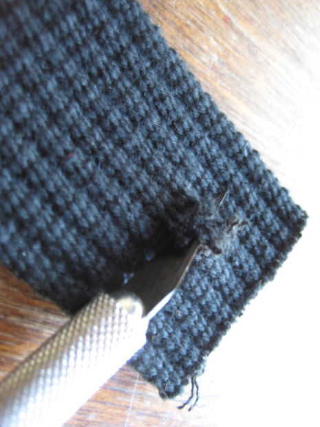 (Si yo fuera engañar durante cualquier paso de este proceso y usar mi brazo malo para constante de la tela, aunque sé no debería, sería hacer estos agujeros con el cuchillo del exacto ;-)