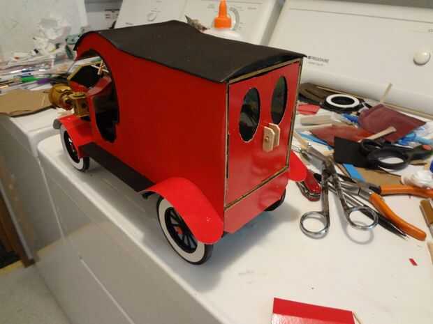 Este instructable es un scooter eléctrico construí y agregó más tarde un mono del calcetín en la parte posterior que parece estar empujando.  Construí este scooter basado libremente en una era de los años 50 scooter Cushman en aproximadamente 2/3rds
