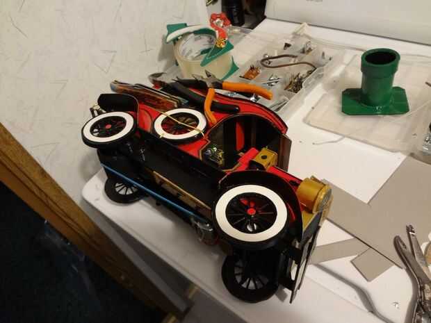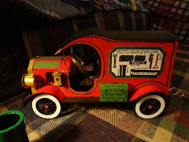 Subió con un par de carteles de publicidad para el lado del vehículo y utilizar bolígrafos de gel para agregar en los detalles. Entonces usé elmers pegamento para mantenerlas en su lugar. Estaban tratando de doblar hacia fuera un poco, así que coloqué algunas herramientas en cada uno para mantenerlos en su lugar mientras seca. Usé plumas gel para hacer un montón de otros detalles como el pinstriping. Se ha añadido una rueda de repuesto en un lado y una caja de herramientas por el otro. Parabrisas instalados y los soportes del parabrisas también junto con otros pequeños detalles aquí y allá.