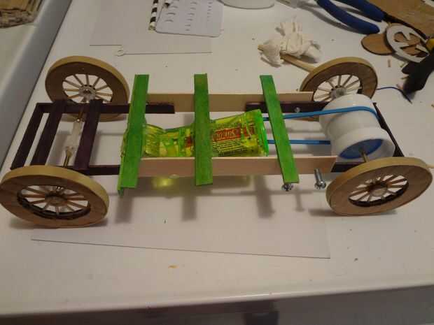 Una vez que mi motor está listo para funcionar. Encendido y asegúrese de que la dirección está convirtiendo así sé cómo montarlo en el chasis para mover el vehículo en la dirección correcta. Determinar donde debe ser colocado mediante la colocación de la banda de la polea sobre el eje del motor y realizar muchas pruebas para encontrar qué posición gira las ruedas traseras mejor como qué ángulo para colocarlo en mantener la banda en el eje de la rueda. El motor tiene que inclinarse ligeramente para mantener la banda en el eje del motor durante la operación. Es crucial que justo antes de que caliente pegando firmemente en lugar, o bien el vehículo no funcionará confiablemente. Yo uso un montón de arriostramiento y caliente pegamento alrededor del motor y sostenga firmemente en su lugar dando el pegamento se seque.