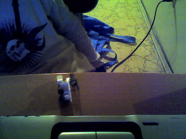 Añadir una de sus piezas últimas dos abrazadera para donde iría una rueda en el extremo posterior del chasis, parece de la parte inferior de la moto manija, sin embargo, ligeramente diferente, pues empieza a ramificarse cerca de la mitad del chasis, colocarlo cerca de la parte exterior de la cosa, luego empuje en la medida en que se pueda , apuntan hacia el extremo posterior del chasis.