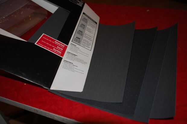 Un paquete de papel de lija "mojado o seco" (de la sección automotriz de walmart) múltiple
