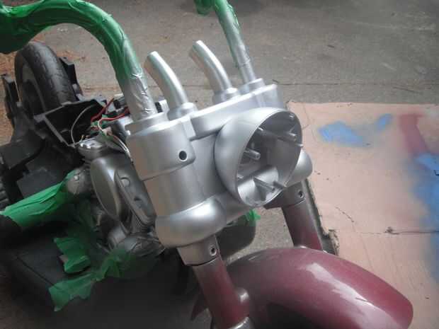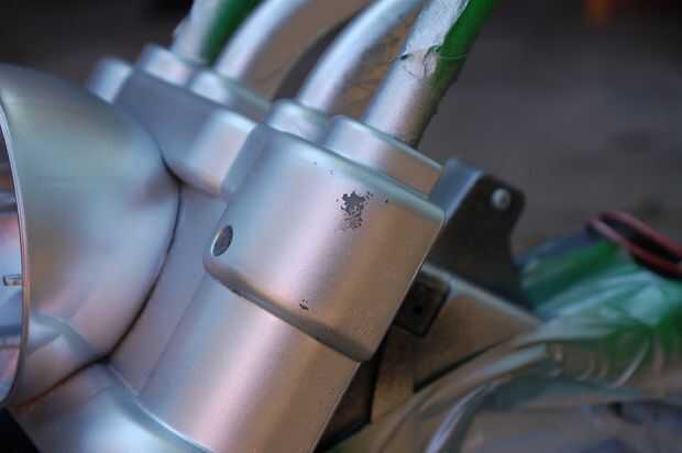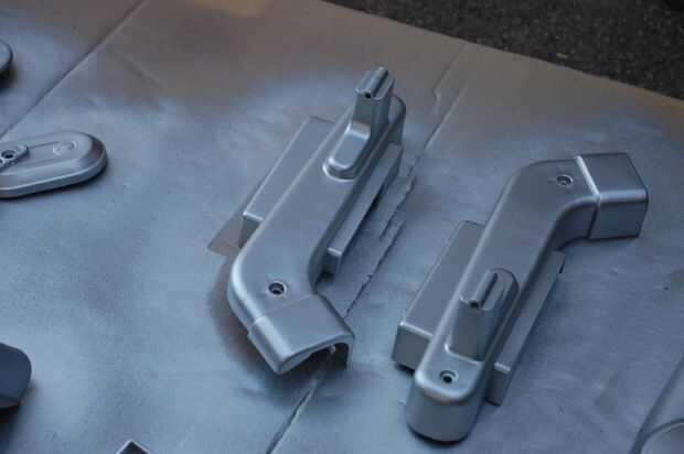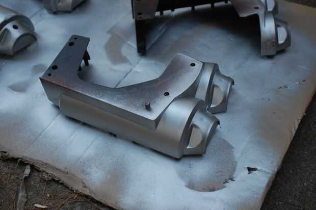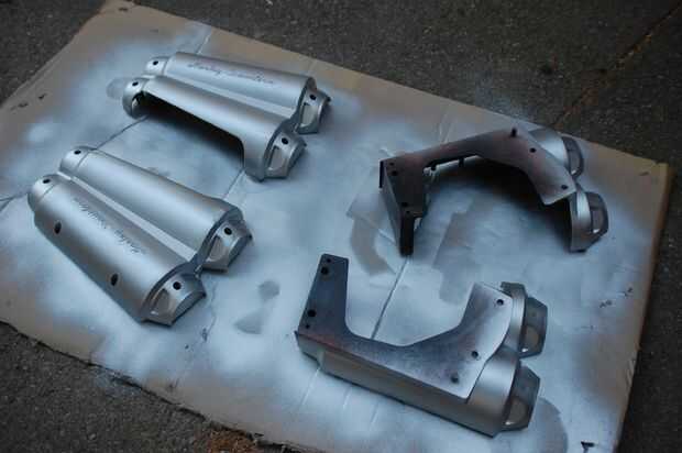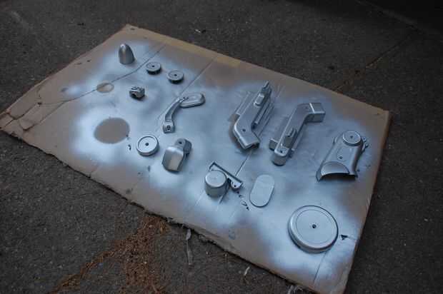 Colocar todas las piezas que deban ser pintadas cromo sobre un trozo de cartón. Si tienes una cabina de pintura, por todos los medios establecer allí. Hice todo mi trabajo en el camino de entrada en un día relativamente tranquilo, para evitar el polvo se adhiera a la pintura húmeda. Todo, dar una ligera capa de un lado, gire 90 o 120 grados y luego rocía ese lado. Repita hasta que todas las caras están pintadas. El día soleado caliente en el cual hice mi pintura, la pintura estaba seca por el tiempo que hice un círculo completo. Hace un par de viajes alrededor de los objetos hasta que estás satisfecho que se han cubierto todos los lados. Mayoría de las piezas puede ser pintada completamente de un lado, a pesar de que algunos tendrán que ser volteadas.