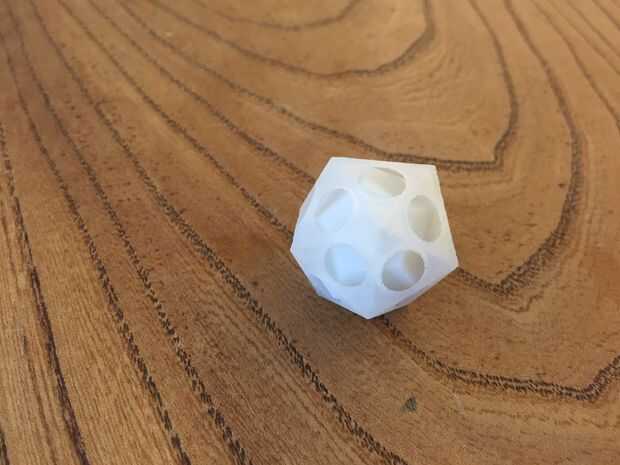 Para el icosaedro arriba imprimí una versión de prueba con un dodecaedro anidado. Se imprime toda la familia cuando las impresoras en el muelle 9 se vuelve a cargar con resinas de colores contrastantes para que las duales internas son distintas. Hasta entonces, compartir y disfrutar, y espero que esto le ayuda con sus habilidades de Inventor.
