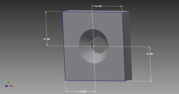 Una vez que tengas tu plaza, usted puede sacar en un perfil sólido. Quieres un poco grueso para que pueda seleccionar los bordes (a diferencia de caras): he usado un espesor de 0.2 de la longitud de borde de cubo. Ahora esto tiene dos caras cuadradas, necesitamos hacer un seguimiento de qué cara es la causa, así que vamos a añadir un agujero avellanado de origen. De esa manera podemos establecer la diferencia entre los dos lados: lado más ancho del agujero está en el plano de origen. Guarde el archivo de la parte.