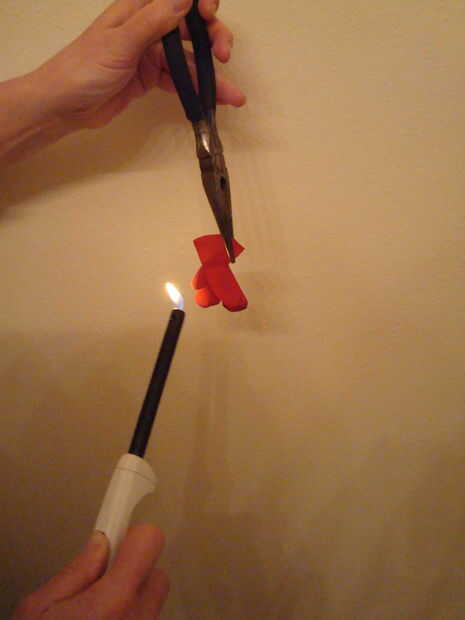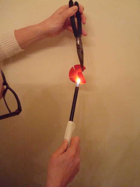En un área bien ventilada, sostenga cada pétalo con los alicates.  Encienda su iniciador de fuego y ejecutar la llama aproximadamente 1/2" de todas las partes del pétalo.