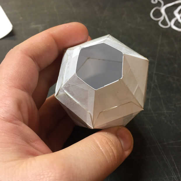 Imprimió la forma que más nos gustó en un papel que era un poco más grueso que el papel normal de impresora y a continuación la guía de minieco en su página web para doblar. Como una medida adicional graba todas las juntas y los pliegues y luego corte un orificio en la parte inferior.