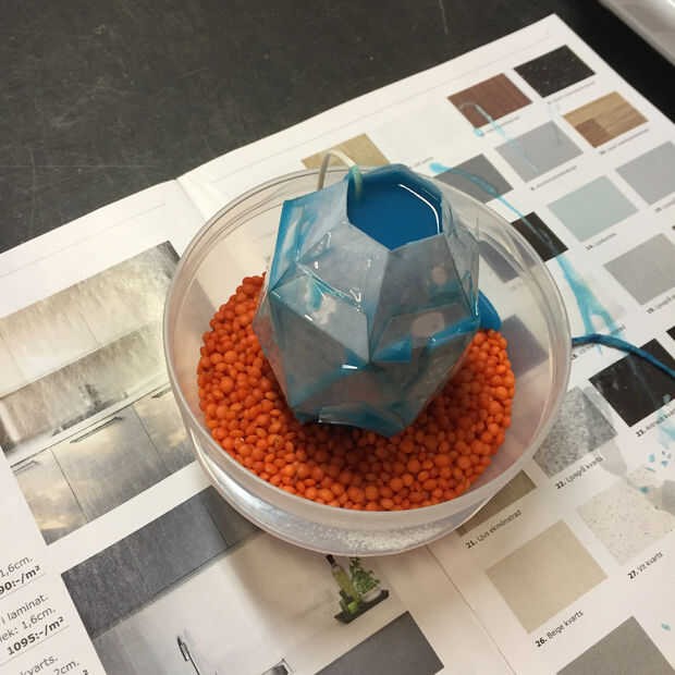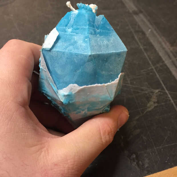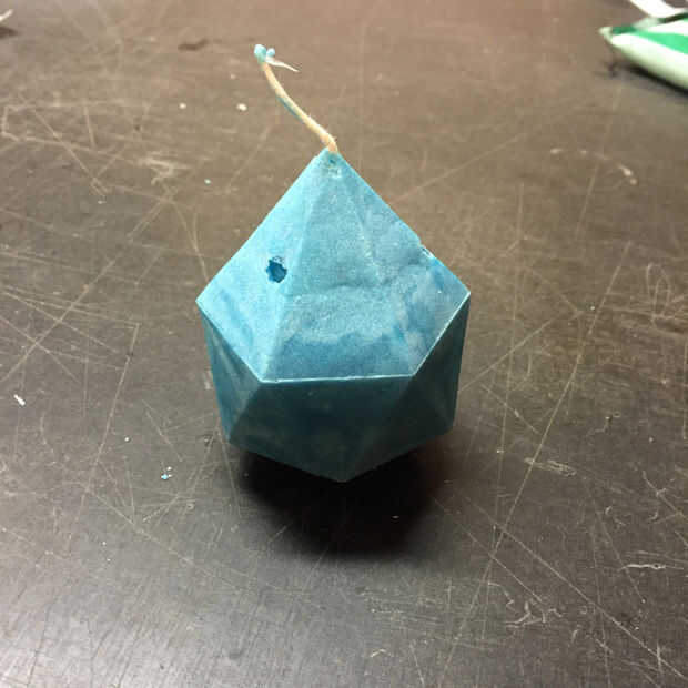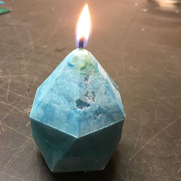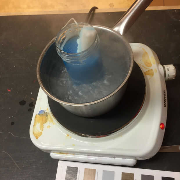 Cuando las velas se empezaron a derretir añadimos un pequeño óleo azul para teñir la vela.