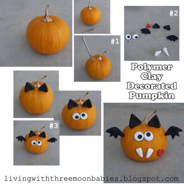 #3 - fijar las piezas de arcilla de polímero a la calabaza