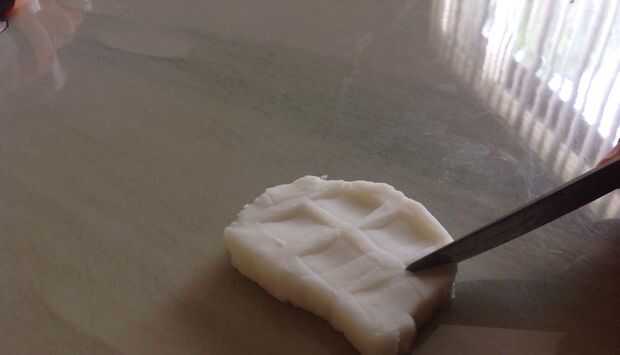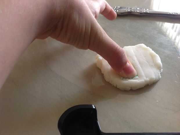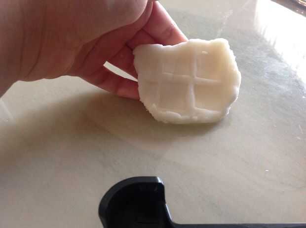 Desplegar la plantilla de arcilla y el lugar en el centro de la arcilla Cortar la forma Coloque la cinta de espuma cuadrada que cortar la galleta y pulse Asegúrese de que todas las plazas alinean juntos Si se solapan las plazas puede cortar los cuadrados solamente no los pliegues