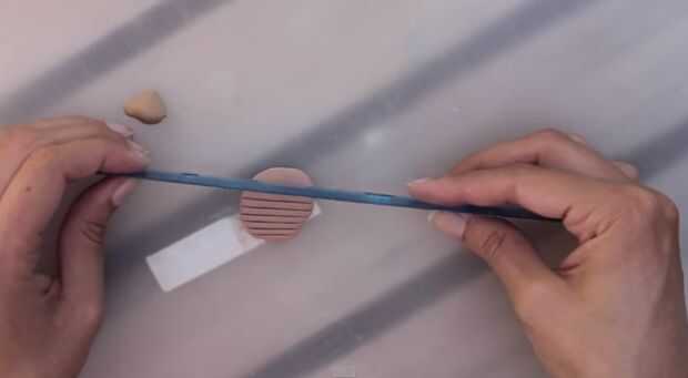 A continuación, presione el borde de la regla en la arcilla, creando líneas horizontales.