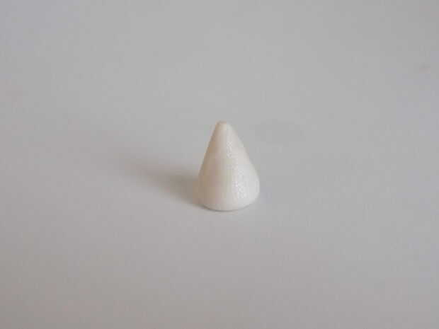 En primer lugar, tomar la arcilla blanco translúcido y rodar en una bola. Desde ahí, rodar el lado con el dedo para formar un cono. Entonces suavemente empújela hacia abajo para hacer que pare.